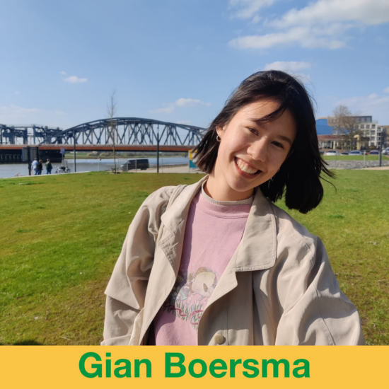 Gian gebruikt schrijven als medium om te verwerken, te realiseren en te manifesteren. In zowel haar tekst als haar leven is ze altijd op zoek naar balans. En hoewel de ervaring vaak centraal staat in haar werk, probeert ze in haar verhalen te zoeken naar nuances, om zowel ervaring als feit te eren.