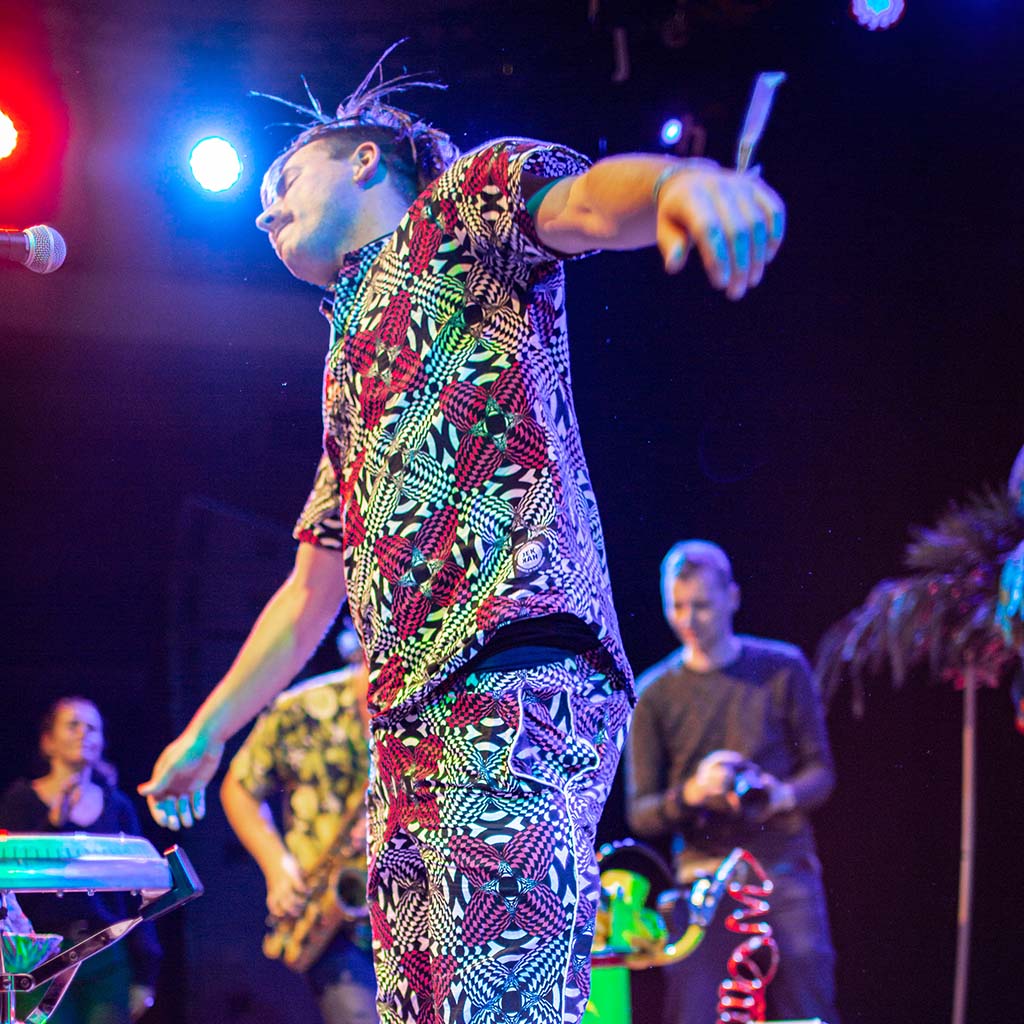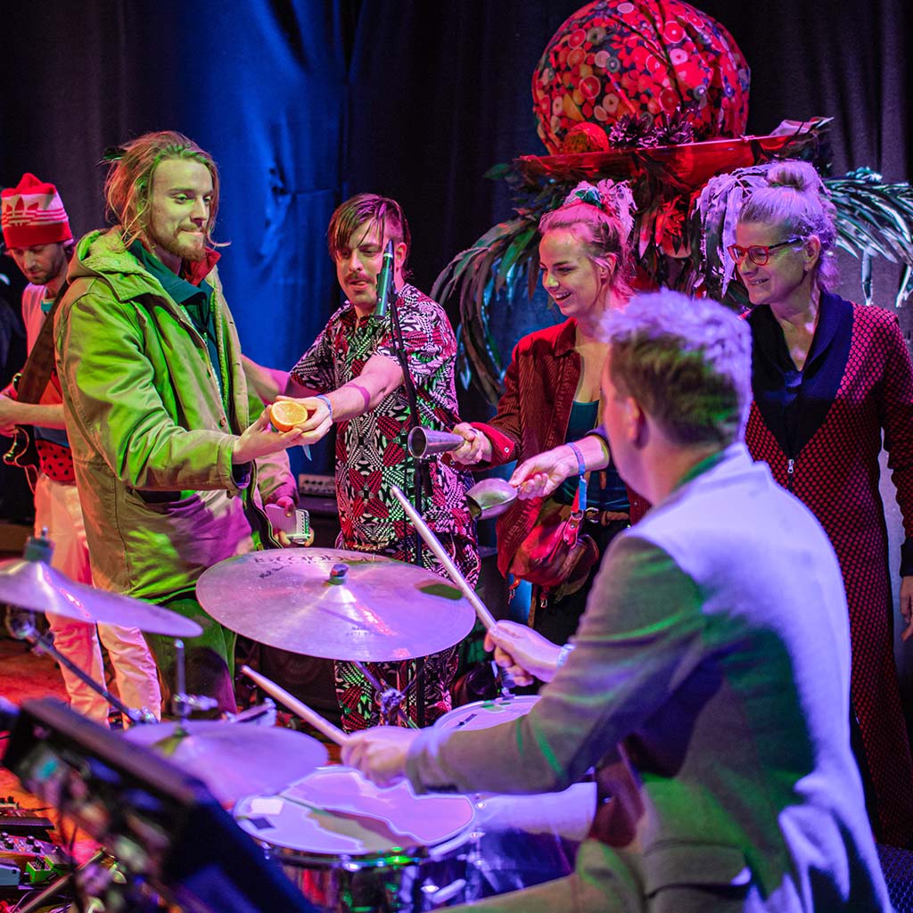 Verwacht Frank Zappa, maar dan zonder het cynisme, verwacht Simon Vinkenoog, maar dan met elektrische gitaar en bessensap, verwacht de radicale liefde van de Turkse politicoloog Ates Ilyas Bassoy, maar dan met een roulette-wiel voor limoenen. Publiek neemt plaats in een gelukkig decor, mag meeslaan op percussie, krijgt fruit toegeworpen en wordt op deze manier deelgenoot van een speels onderzoek.
